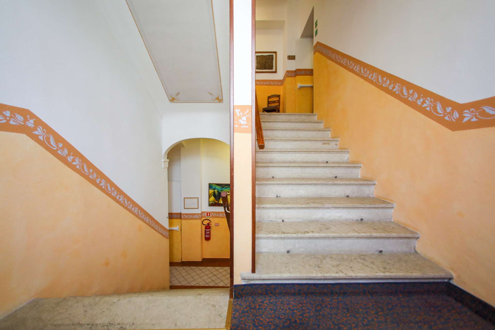 Unser Hotel besitzt den Charme eines historischen Gebäudes: dicke Mauern, hohe Decken, Fußböden in Marmor.